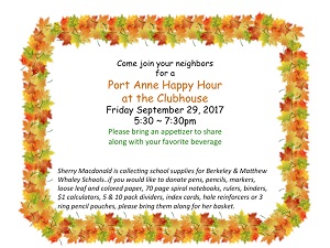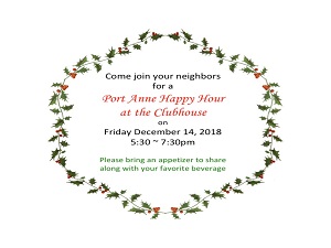 Port Anne residents utilize the Clubhouse for community social events. The Clubhouse is also rented by residents for private social gatherings. Guest rooms are available for rental by homeowners. See the Clubhouse web page for details. | ||